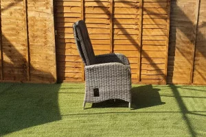 Entertain a whole gathering on the patio area with this wonderful 6-seater rattan dining set. The extra comfortable reclining dining chairs come with cushions included, and their high backs make relaxing long into the evening comfortable and practical.