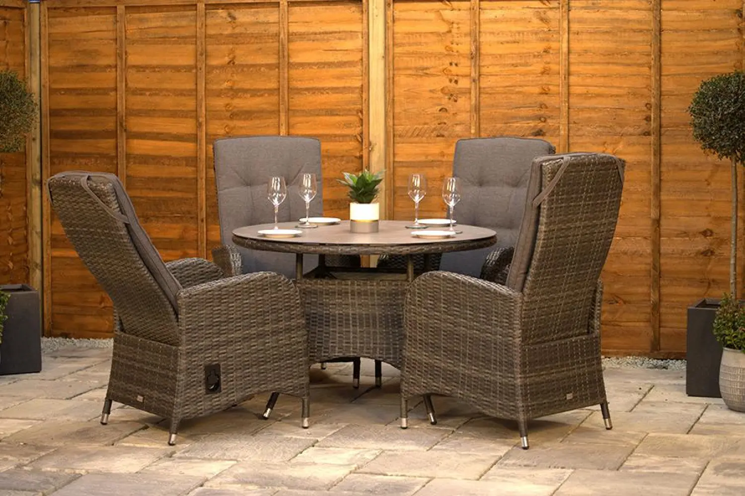 Burbage 4 Seater Round Reclining Dining Set in Stone Grey Rattan